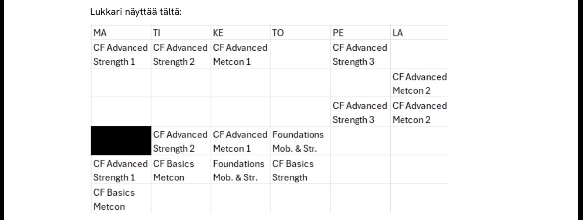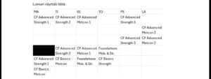 Tällä viikolla 3 patteria, 15 min / kpl, joissa keskitytään lantion, olkapäiden ja keskivartalon alueisiin.